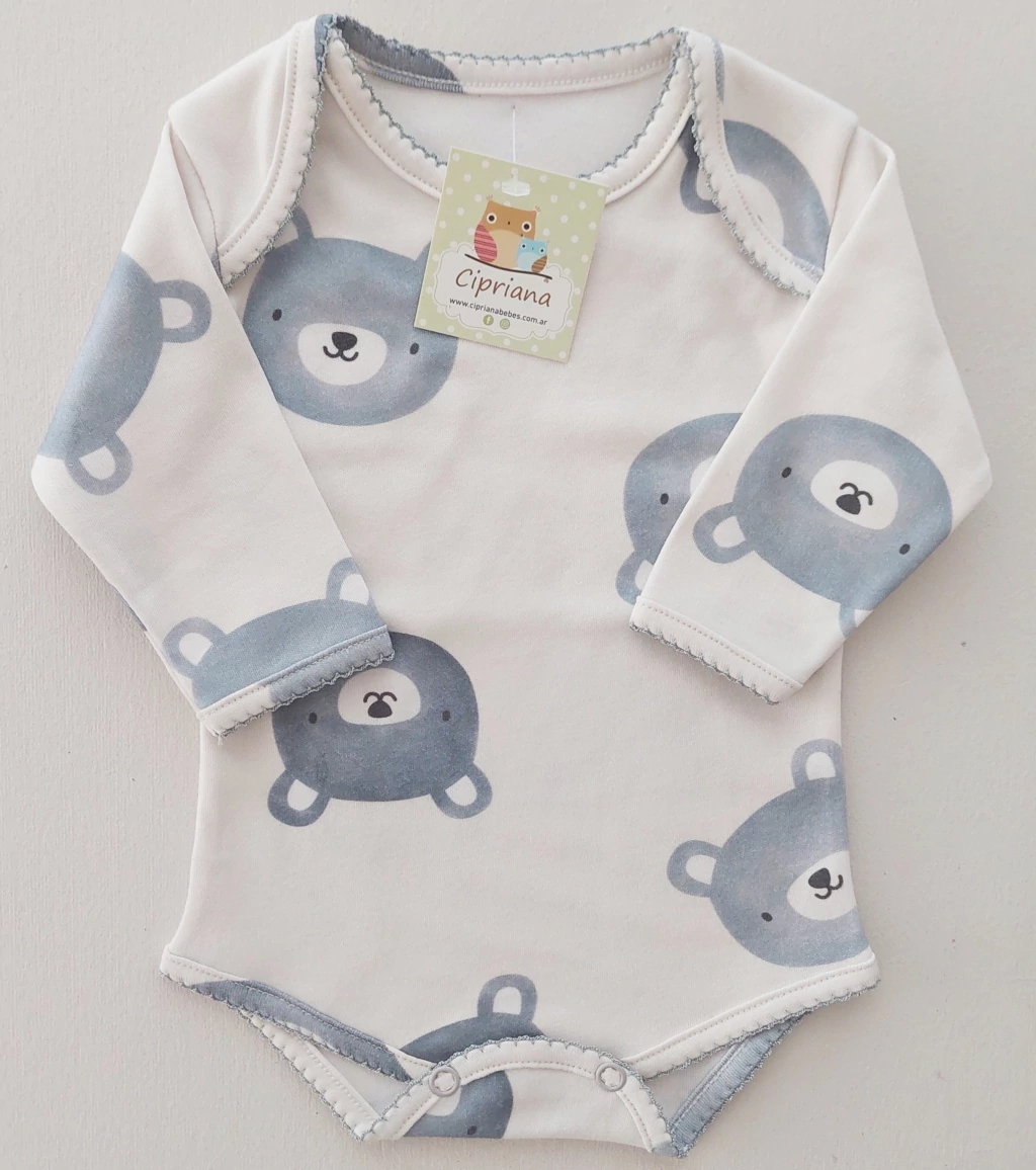 Algodón 100% pima. Natural y estampado ositos sobre base natural.